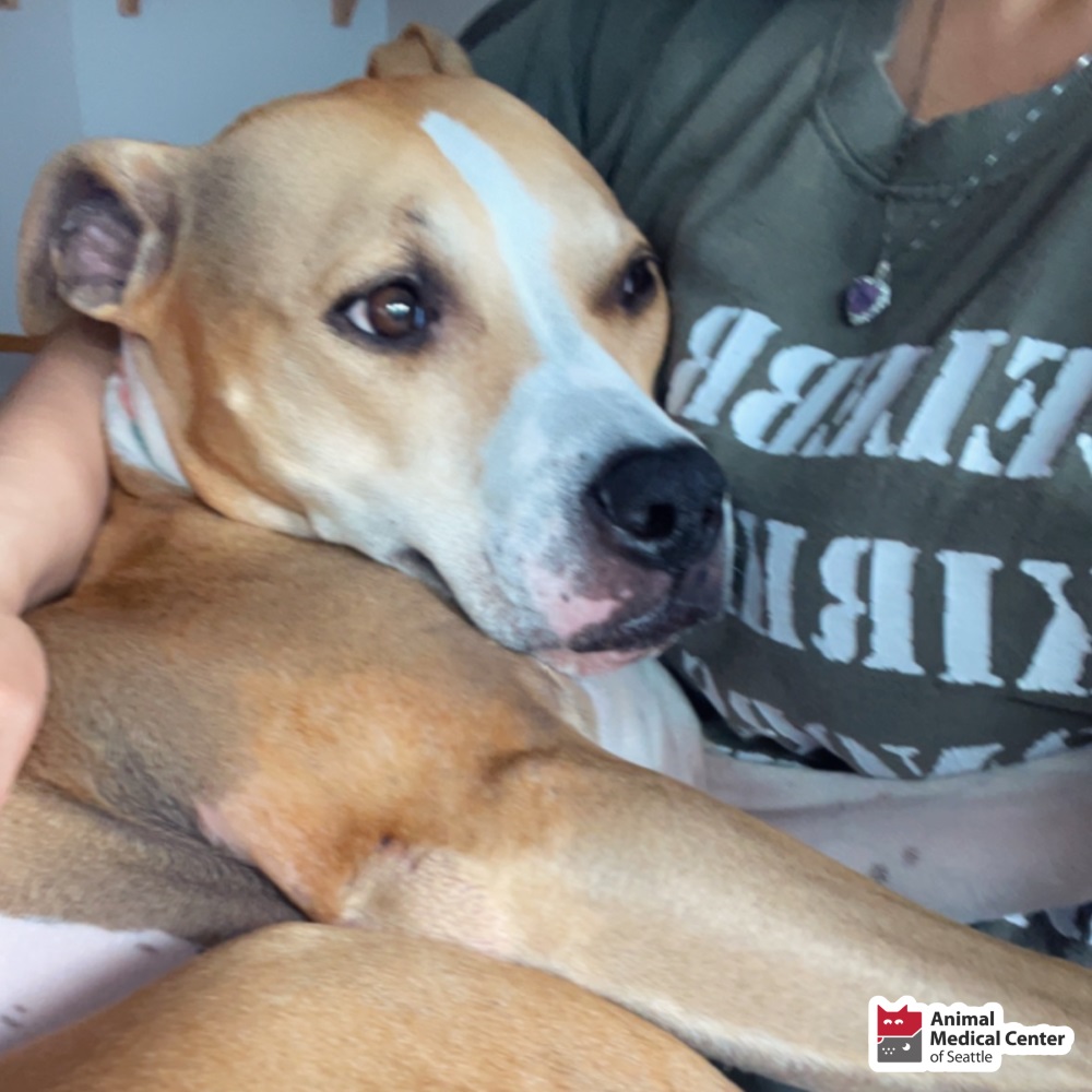 We are happy to report that Quinn is in full remission and she is getting her strength back every single day! Her family is grateful to everyone at Animal Medical Center of Seattle to still have her in their lives, so she can continue cuddling like she’s a tiny little dog, going to the beach, going on car rides, never letting her two favorite balls out of her sight, and playing with her 16-year-old brother.